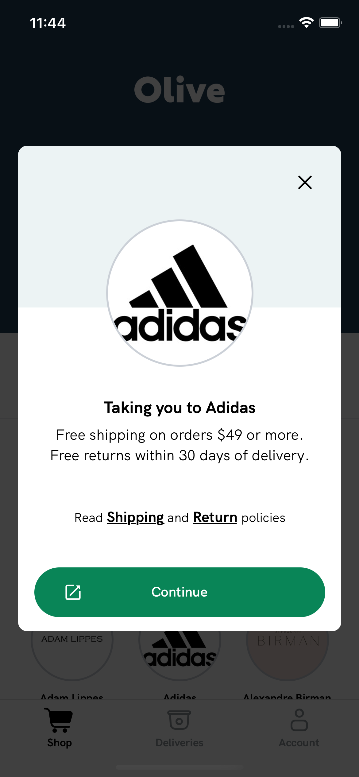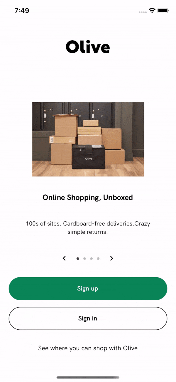 Project Description: Shop Olive is a mobile app that allows customers to buy, return, or consign clothing from top US fashion retailers. The app features hundreds of retailers whose websites can be accessed within the app or through a Chrome extension for desktop users. Once an order is ready to be placed, the app prompts the customer to accept their automatically populated "Olive address" (the nearest Olive distribution hub based on the user's zip code), and the order is placed automatically. It offers an auto-checkout and payment experience and customers can then view their orders, return or consign items, and track their orders with real-time updates.